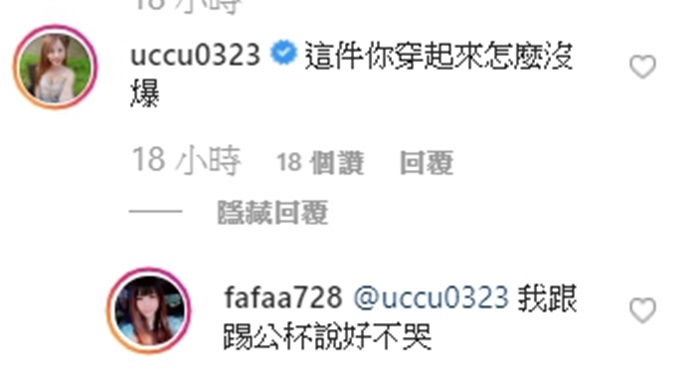 然而李花照片一出,擁有同樣泳衣的Youtuber「瑀熙」也現身留言,「這件妳穿起來怎麼沒爆」,大大地捅了李花一刀!李花則逗趣回覆,「我跟踢公杯(老天爺)說好不哭」。