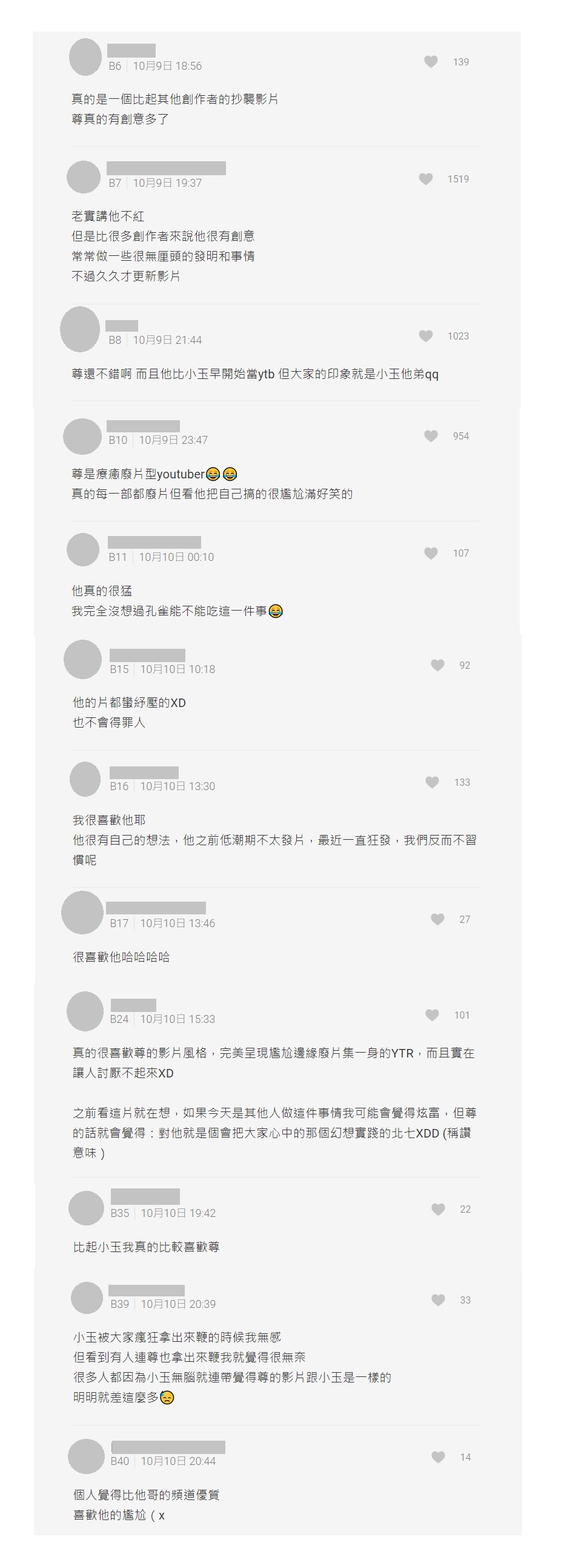 而此篇貼文一出,也讓許多網友紛紛現身為「尊」抱屈,更直言「真的是一個比起其他創作者的抄襲影片,尊真的有創意多了」「尊還不錯啊!而且他比小玉早開始當Youtuber,但大家的印象就是小玉他弟」「尊是療癒廢片型youtuber」「比起小玉我真的比較喜歡尊」,大讚「尊」的影片有創意又療癒,更直言不能把他跟哥哥「小玉」混為一談。