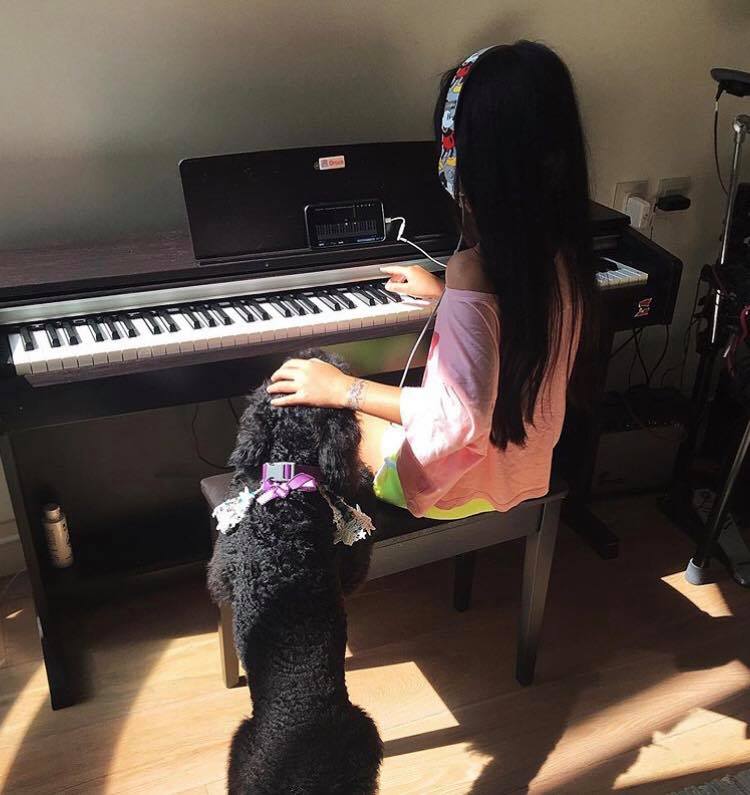 Grace的媽媽吳速玲,近日在個人社交網站上PO出照片,在美好的早晨中分享日常親子時光,她感嘆表示:「看似和諧的早晨~其實我在想要怎麼搞定這3隻⋯⋯」附上的三張照片,不僅有近期剛飼養的玩具貴賓外,更引人關注的是九歲的Grace的近照,連三張從背影到正面,都已經和五歲的她截然不同,身材完全抽高,連圓潤的嬰兒肥臉型也變了!穿上超短真理褲,充分地展現逆天長腿!