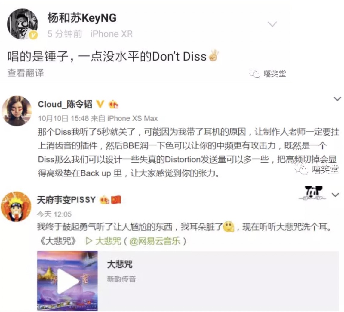 在10月9號傍晚時,雲南說唱歌手「黃昭」突然在微博上發表一首歌曲《唵嘛呢叭咪吽》,並在文案中大方的打出「福克斯Diss」,也表明自己也沒有特別的原因,僅是看不慣福克斯而已,而在歌詞中也不斷抨擊福克斯,而歌名《唵嘛呢叭咪吽》是佛教的六字真言,暗示著福克斯唱歌如同念經。歌曲曝光後同為兄弟的「楊和蘇」也馬上跳出來發文聲援福克斯,說道:「唱的是錘子,一點沒水平的Don’t Diss」,其他成員也都紛紛發文回嗆黃昭,其中知名音樂製作人「陳令韜」更說:「那個Diss我聽5秒就關了」。