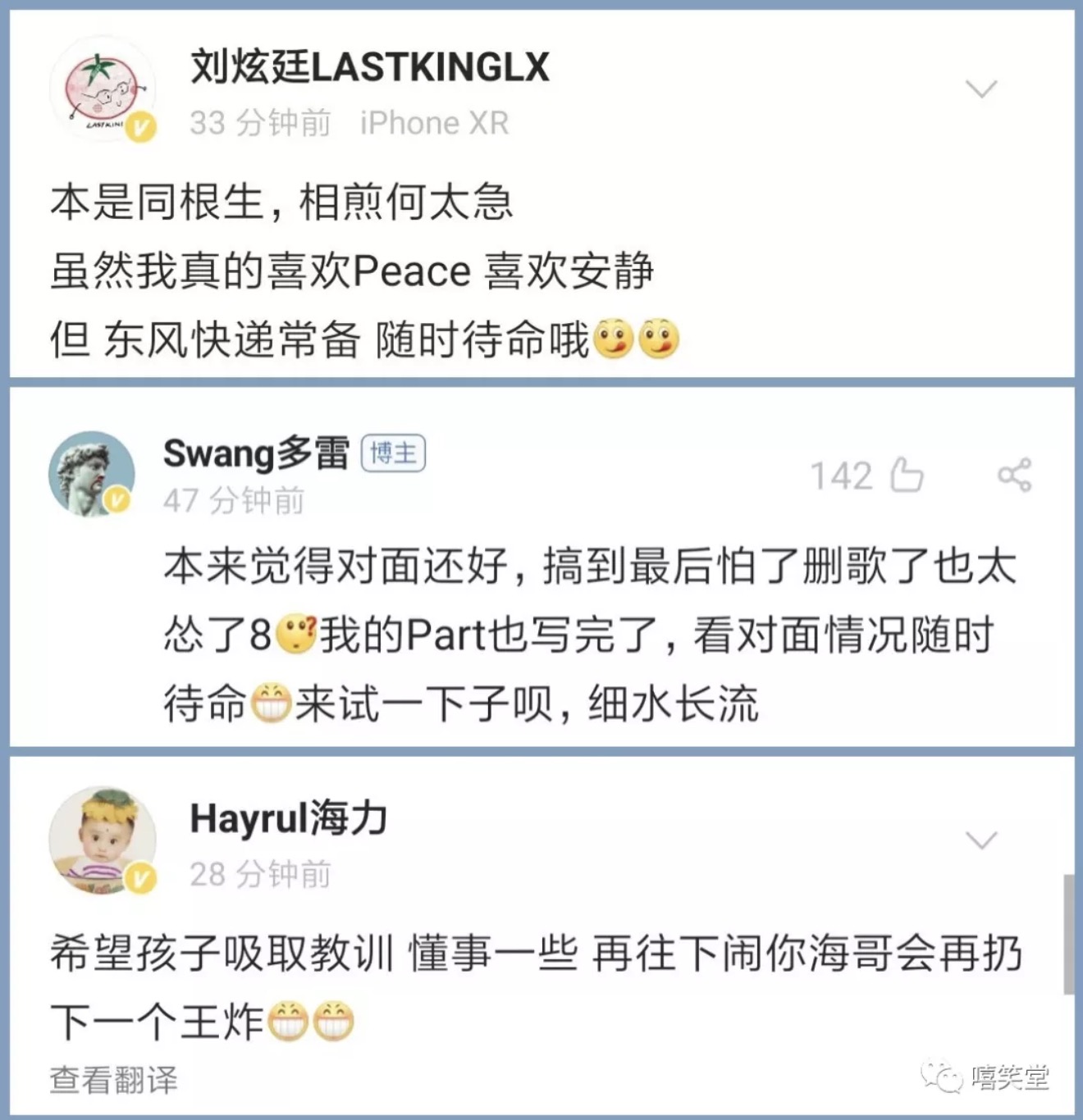 然而在6月時新疆也成立了新廠牌「馬王HorseKing」,成員除了福克斯之外還包含:劉炫廷、多雷、海力、潘潘,而這次的diss大戰中馬王HorseKing的成員們也加入了戰局,像是劉炫廷就發文寫下:「本是同根生,相煎何太急」,最終黃昭抵不過輿論壓力,將《唵嘛呢叭咪吽》刪除下架。但是在10月12號時,黃昭的隊友「Kisos」推出新的diss歌曲嗆爆活死人全體成員,而黃昭本人在昨日(14)也發表新的diss歌曲《Look At Me (Remix)》,再次點燃戰火。