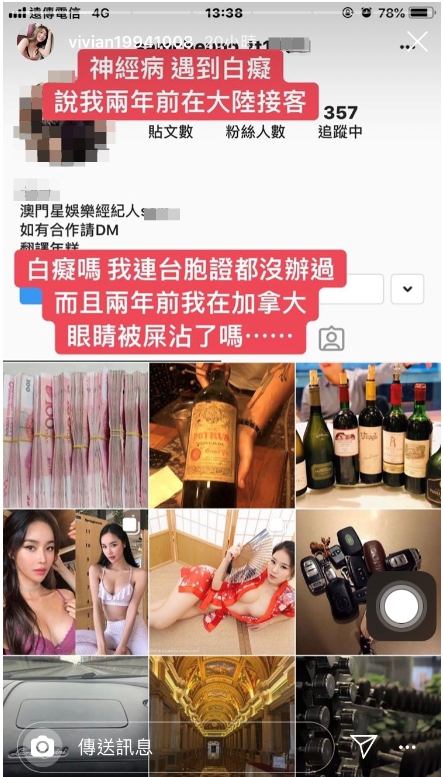 網紅「謝薇安Vivian」因一段在健身房運動的影片「震暈」粉絲,因而聲名大噪,漸漸打開知名度!長相相當出眾、更擁有「前凸後翹」姣好身材的她,其實已經在19歲結婚,更和老公生下一名可愛的寶寶,因為產後身材恢復迅速,更被網友封為「最強奶媽」!近日,有自稱是「澳門星娛樂」經紀的網友,聲稱謝薇安2年前大陸接客,讓她忍不住在網上開炮,怒轟:「腦袋進蟲嗎?」