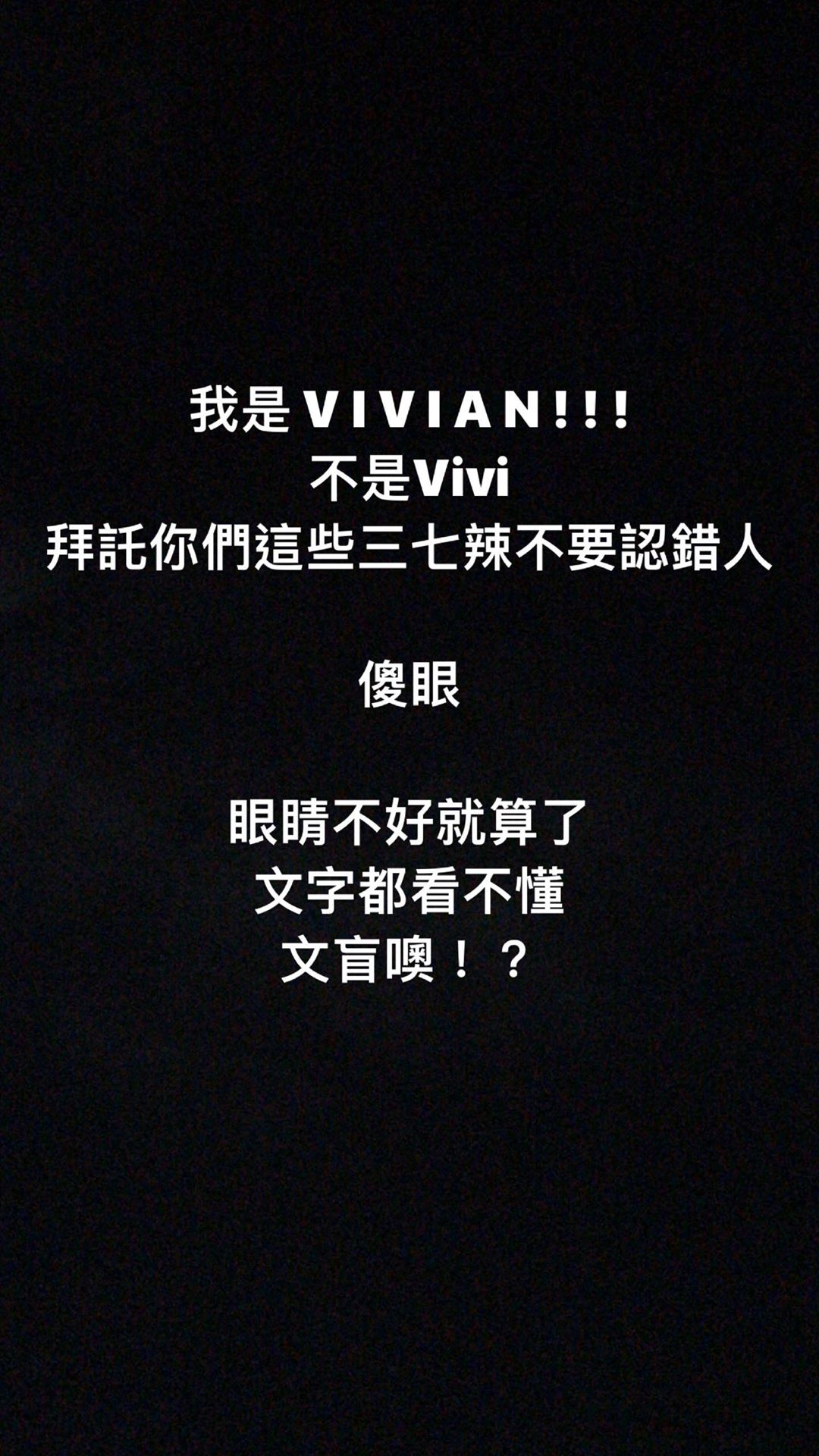 但謝薇安似乎還是氣不過,再度PO出限時動態,怒轟:「眼睛不好就算了,文字都看不懂,文盲噢!?」並貼出對方的個人主頁,先是表示自己「遇到白癡」,更直批對方「眼睛被屎沾了嗎…」,看得出來褲氣未消,仍十分生氣。
