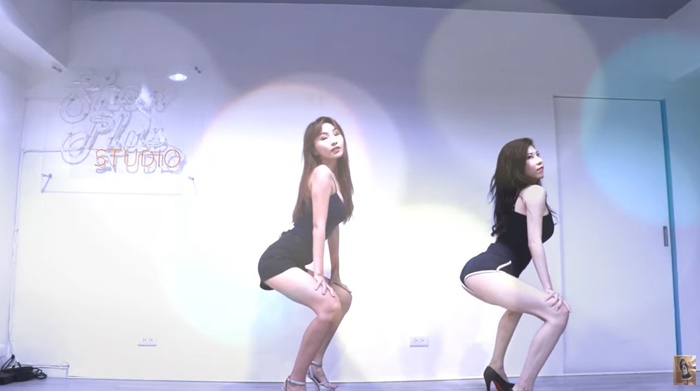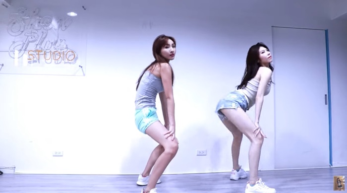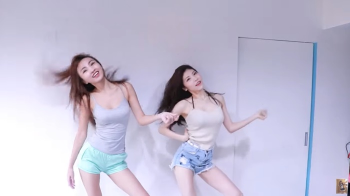 影片最後,「壽司」也公開特訓成果,只見「壽司」和「丁法法」兩人腳踩著高跟鞋,扭腰擺臀十分性感,兩人的穿著也很吸眼球,她們同樣穿著細繩小背心,配上超短真理褲,跳著性感動作使屁股蛋若隱若現,影片讓人差點噴鼻血!