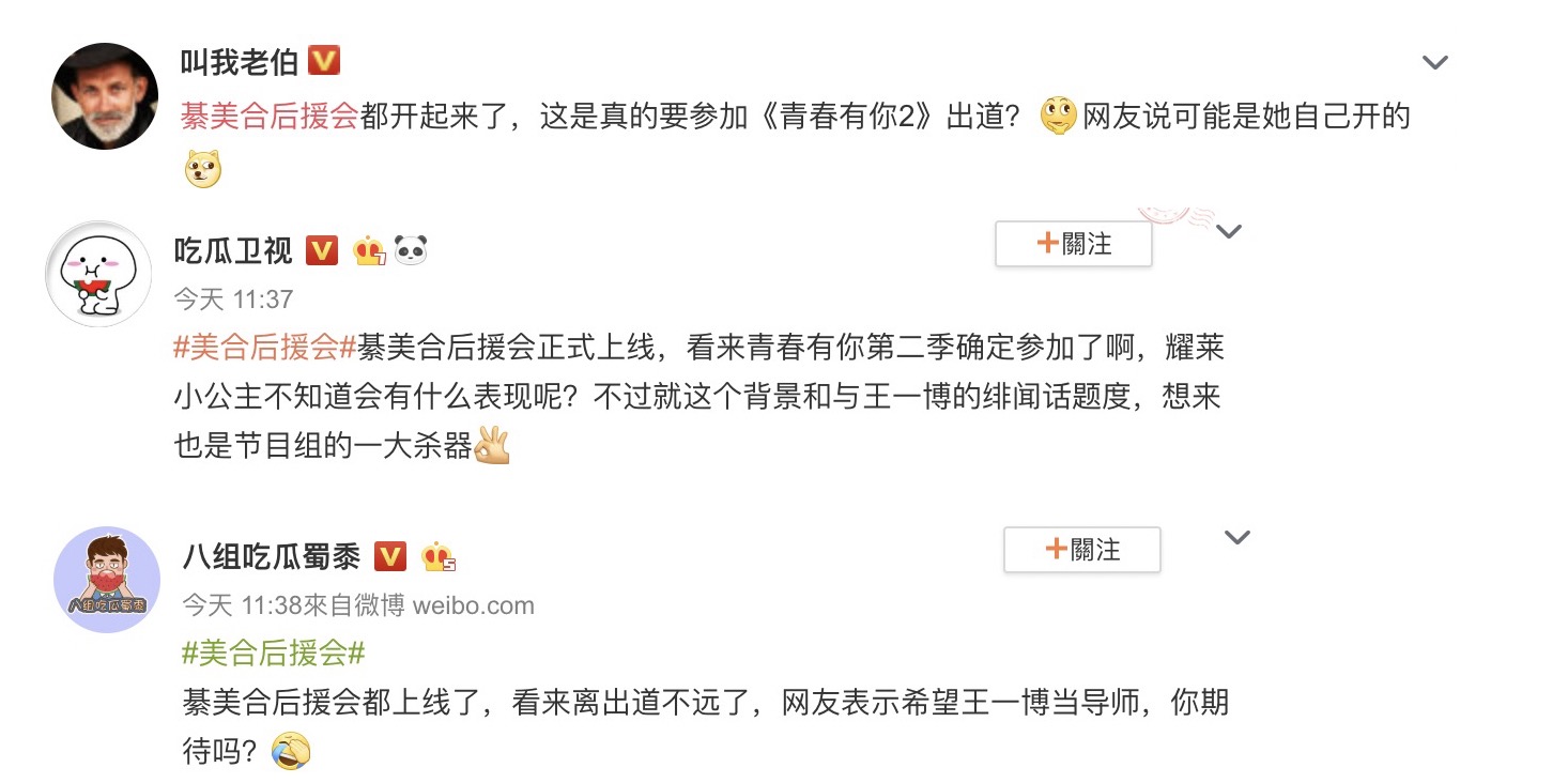 大陸耀萊集團的千金「綦美合」雖然她並沒有正式在演藝圈中出道,但因為家世背景顯赫加上自身相當喜歡追星,因此也結交了許多圈內的朋友,然而在8月中時,在微博上出現多則爆料消息指稱綦美合將進軍演藝圈,甚至還要到韓國知名娛樂公司「SM」擔任練習生,近日選秀節目《青春有你2》曝光導師名單以及預告片後,許多娛樂博主也稱:「綦美合即將參加節目」,甚至連後援會都搶先成立,引發熱議。