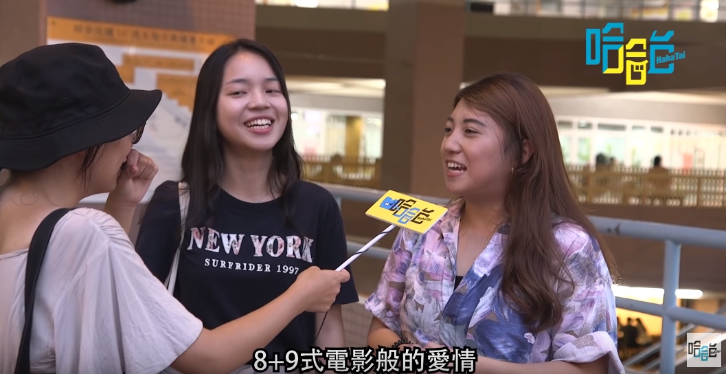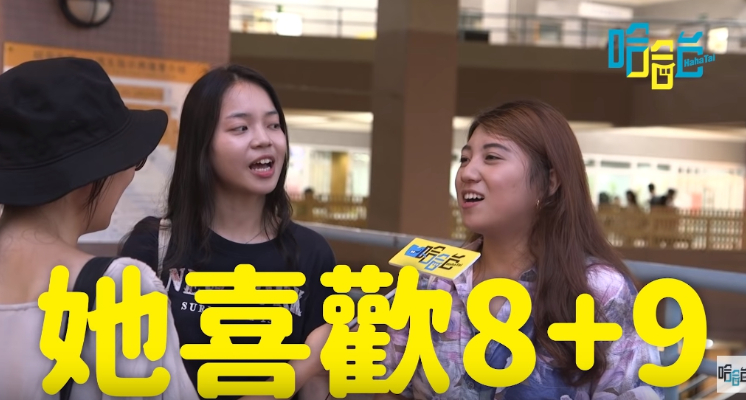 哈哈台原本是訪問英文名字,這位英文名字叫Barbie的女學生被訪問對於未來另一半「肯尼」想要有什麼條件,她還在猶豫不知道怎麼回答時,身旁的好友則是先幫她回答:「她喜歡8+9」,Barbie也相當欣然地就承認了,當然哈哈台也有問她為什麼會喜歡8+9,她則是回答說:「想要有8+9式電影般的愛情,那種刺青然後飆車,刺激的那種」,這個回答也算是終於等到了一個合理解釋!