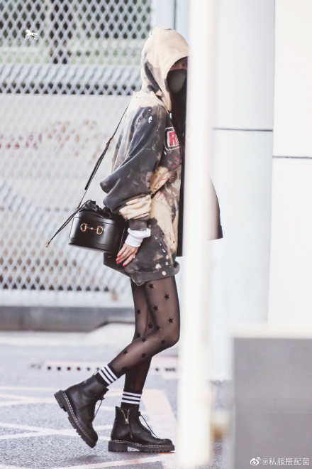 然而在20號楊冪再次現身北京機場,有鑒於3天前的造型引起兩極討論,這次楊冪身穿一件連帽的外套,下半身則穿上牛仔短褲並配上了充滿星星的黑色透膚絲襪,腳上則是穿了她出鏡率非常高的馬丁靴,這一次楊冪露出了她纖細的大長腿,又長又直的腿型也令網友們欣羨不已。但她的星星絲襪又再度引起網友關注,不少人認為黑絲襪上的星星圖騰有些扣分,說道:「老實說我看不懂」、「好土好難看」、「真的土,尤其絲襪那條線」,穿搭再次引發話題。