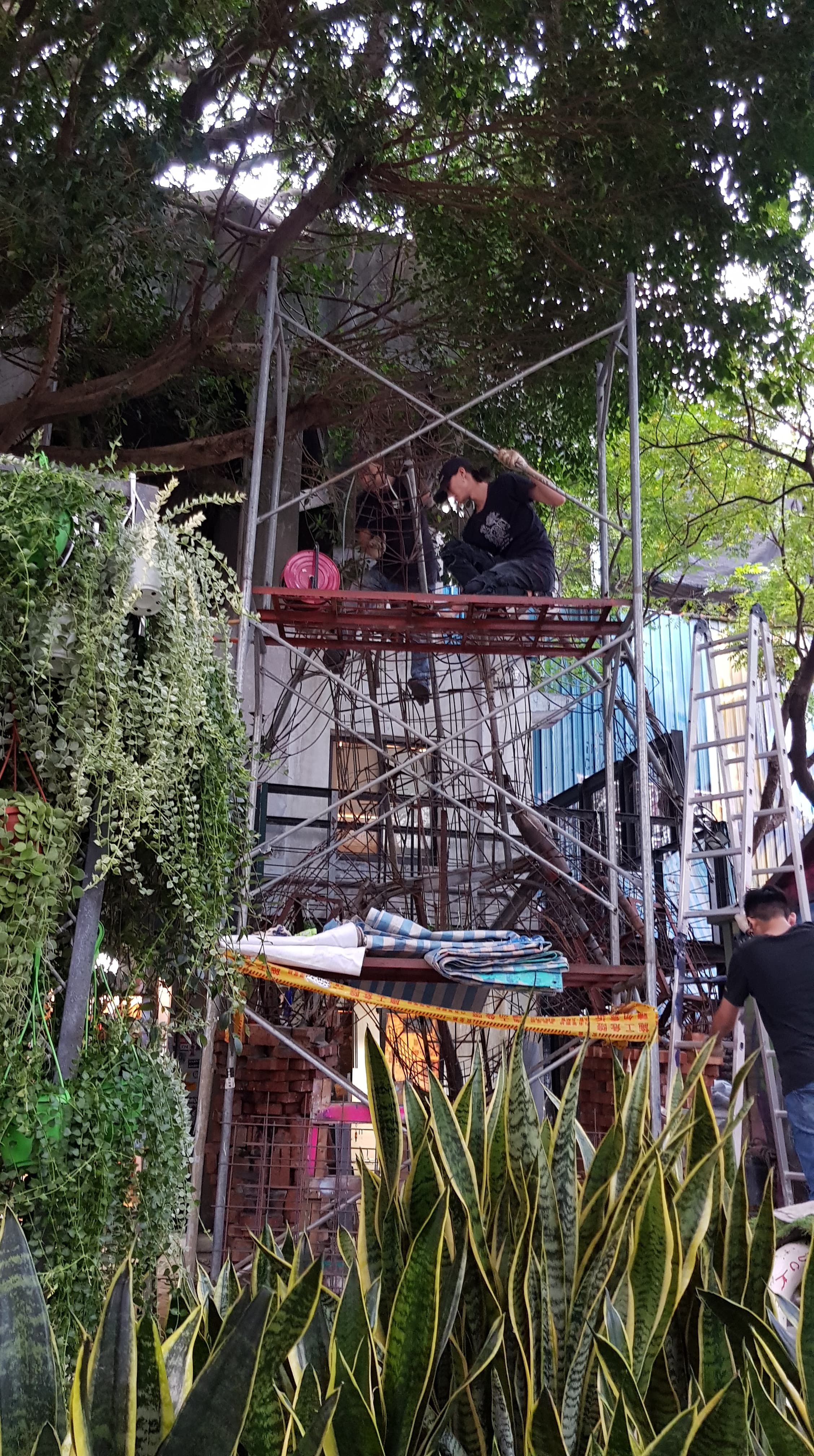 因為塗鴉創作基本上都是在戶外居多,當被問到在作畫時,有沒有碰上什麼難題,或是天氣狀況不佳有何影響時,傅星翰也指出,「天氣是不可抗因素,每一幅作品都有可能碰到天氣不好的時候,只能看運氣了啦~最麻煩的是,很多年輕機車騎士在巷子內騎很快,某次我被撞到梯子,差點跌下來,還會有車子不斷經過,一直按喇叭要你讓路...有時畫得正順手,感覺來了,卻又馬上要上上下下的喬梯子,定位後又得重新調整狀態了!」