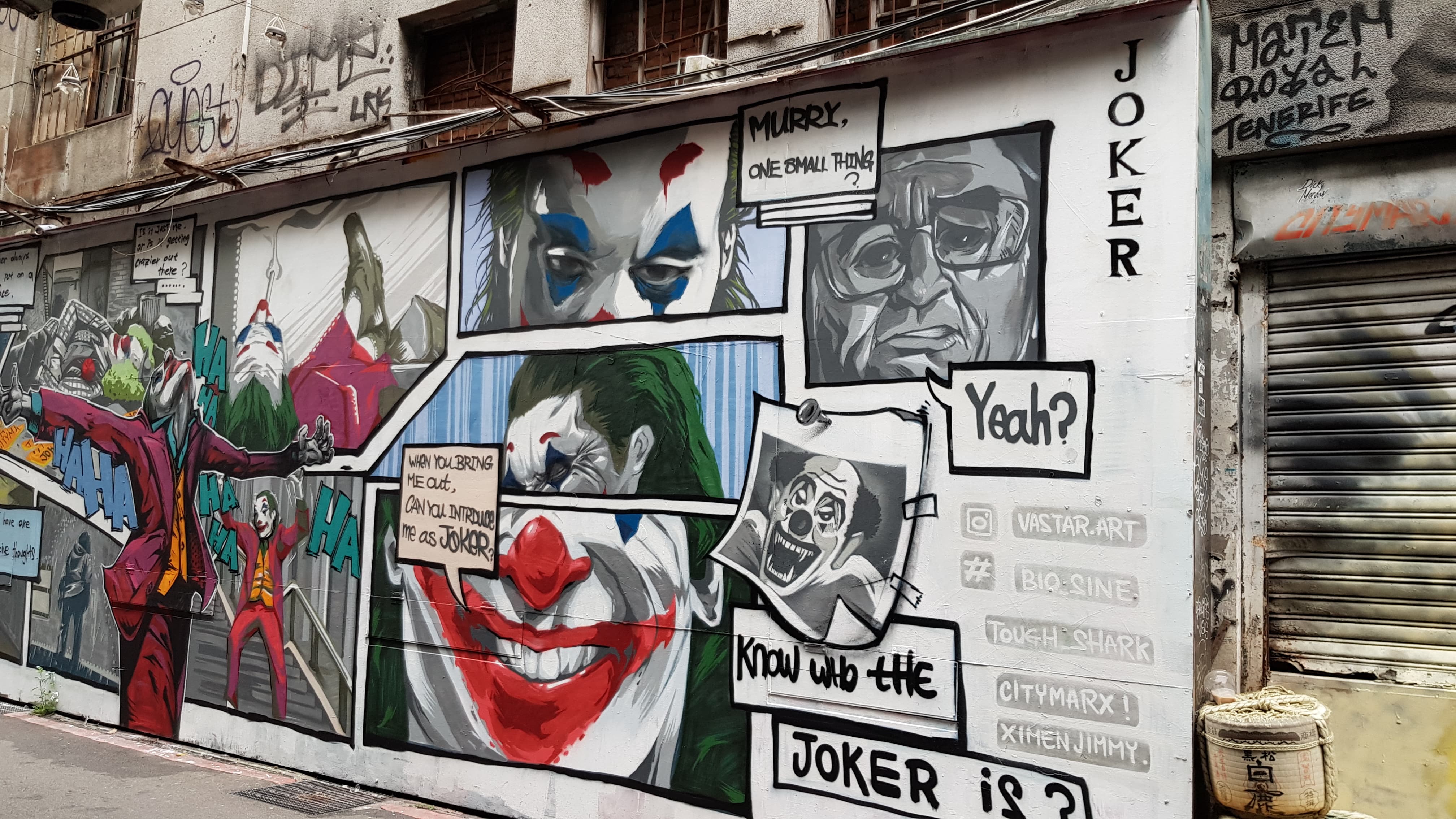電影《小丑》一上映之後,就掀起一陣熱潮,到現在要上電影院看電影買票還是很難買!不過,還沒看過電影的人別煩心,可以先到西門町的電影主題公園走走,這裡可是有著超級無敵厲害的《小丑》主題漫畫牆哦!而且創作者「傅星翰」可是在電影上映前,就已經完成這幅作品,現在已經成為最夯的全新打卡點,還沒朝聖過的已經落伍啦!