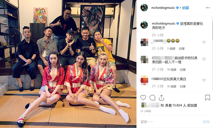 21日時,熱狗在IG上PO出一張照片,表示:「這裡真的是賣玩具的地方」,結果意外引起網上熱議。照片中,熱狗坐在中間,而他前方坐了3個辣模,因為3名女子穿著火辣,領口開得很低,大露胸前一片雪白以及深邃的胸線,裙子也堪堪只能遮住重點部位,讓這3名辣模只能交疊雙腿,並用手加以遮掩「三角洲」部位,露出一雙穠纖合度的纖細長腿。
