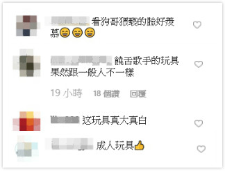 而頭戴黑帽、身穿一身黑的熱狗,則俏皮用雙手在下巴處擺出「開花」的姿勢,看得出心情相當愉悅,讓網友忍不住調侃他:「看狗哥猥褻的臉好羨慕」、「饒舌歌手的玩具果然跟一般人不一樣」、「這玩具真大真白」、「成人玩具」。