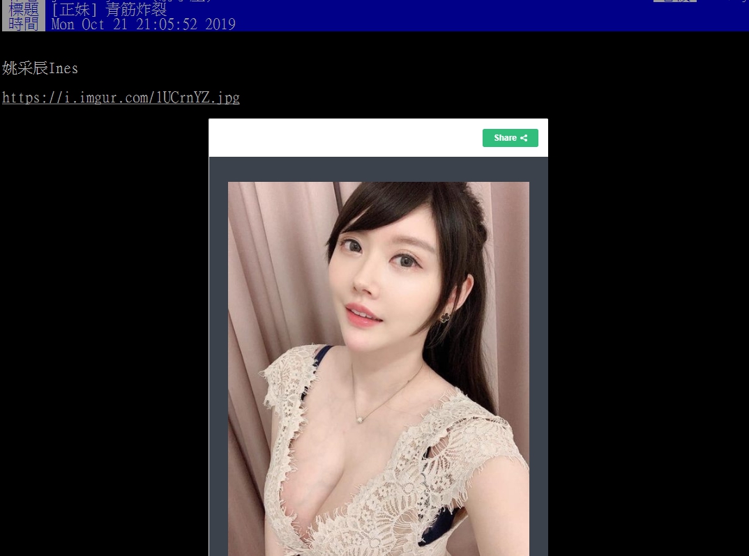 小模「姚采辰」是PTT表特版常客,也曾上過綜藝節目《國光幫幫忙之大哥是對的》,不但有甜美笑容,更有著32G的超猛上圍,天使臉蛋魔鬼身材,令她IG追蹤人數高達45萬!日前「姚采辰」再度登上表特版,卻被鄉民質疑整形表示,「那個下巴都快刺出我的螢幕了」。