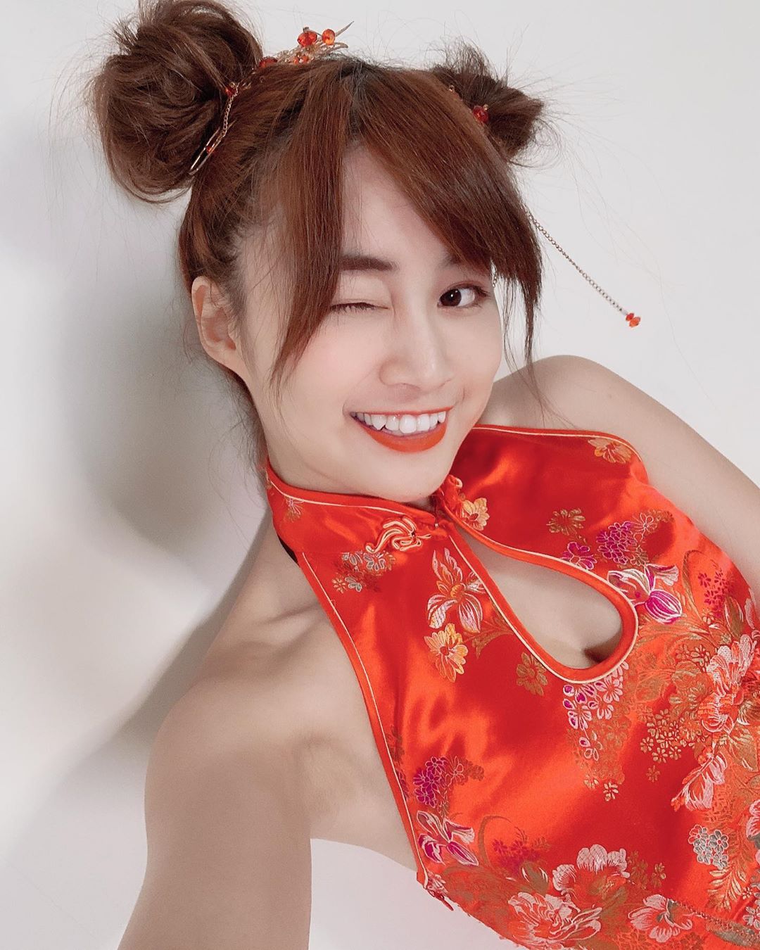 影片中,閃亮亮將頭髮盤成公主頭,一頭長髮十分飄逸,仙氣逼人。而她身穿一套以藍色系為主的短版古裝,兩袖是飄逸的薄紗,露出纖細的手臂和一雙白皙的長腿。除此之外,閃亮亮的胸前還開了一個洞,讓她露出相當深邃的事業線。而陳伊則將頭髮在頭上綁成雙丸子頭,扮相十分可愛,有別於亮亮的藍色系古裝,陳伊身穿一身紅色短版旗袍,削肩設計露出兩條手臂,胸前也開出一個水滴形狀的大洞,讓她傲人的身材曲線無所遁形!