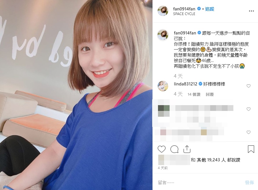 事實上,焦凡凡近期除了忙碌的工作以外,也安排自己運動,IG限時動態更可以看到焦凡凡分享運動影片!而焦凡凡前幾天也在貼文中表示,「繼續努力,維持這樣積極的態度一定會變瘦的!變瘦真的是其次,我想要有健康的身體。」