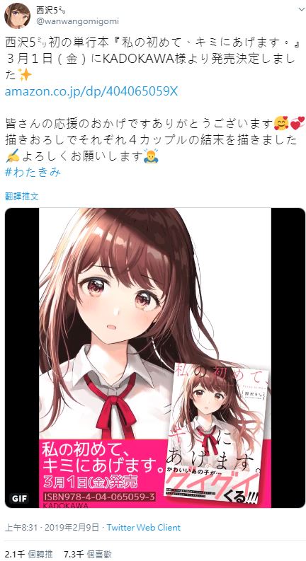 現年僅26歲的日本漫畫家西澤(西沢5ミリ)外界多稱他是「西澤老師」,筆下繪製人物都是巨乳妹,過去倚靠網路作品走紅,目前光是推特就有超過30萬人追蹤。而西澤的真面目其實早在今年3月就曝光,當時正逢日本角川替他發行第一本漫畫《給我你的第一次Give you my first time》。