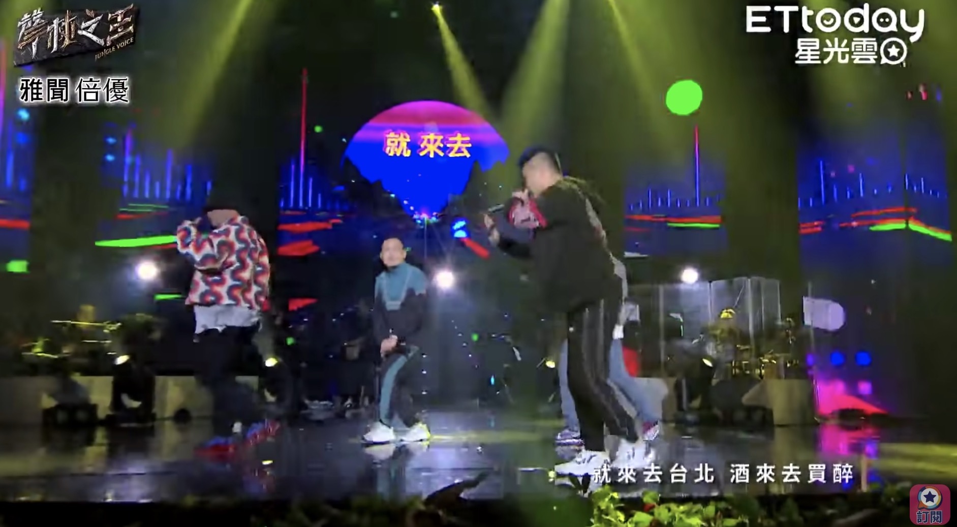 《聲林之王》在最新一期節目中迎來「神獸合唱資格戰」的賽制,選手們將和眾多實力派唱將一起合作,其中台灣嘻哈團體「玖壹壹」也受邀擔任飛行嘉賓,在屁孩以及曾韻璇之間,最後玖壹壹選擇屁孩一起合唱《來個蹦蹦》,當天玖壹壹更還原了MV裡的造型,和屁孩一起大跳招牌舞蹈,其中屁孩也加入了自己的改編的段落,就有許多網友發現屁孩在唱到:「就來去台北、酒來去買醉」,這幾句的Flow和《中國有嘻哈》吳亦凡戰隊秀中「小白」演唱的段落非常相似。