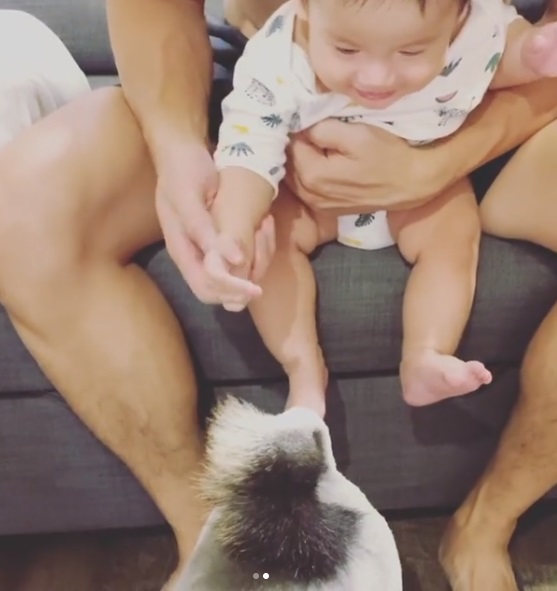 我們從她貼出的影片中可以看到,馬俊麟抱著小孩並且抓著孩子的手想要去觸摸狗狗的尾巴,而狗狗也非常友善的轉過身來聞聞小孩的手,還會稍微舔一下,嚇得孩子趕緊把手手伸回去XD影片中看這一家人,感覺非常幸福,許多網友們看了都紛紛留言說,「我覺得妳真的好棒!好正向、好智慧、好有愛」、「但願之後能常看到你們夫妻倆的同框照!」、「你們家對小動物真有愛心」、「最後的贏家~幸福一定會在妳身上」、「天啊~是Mars爸爸」。