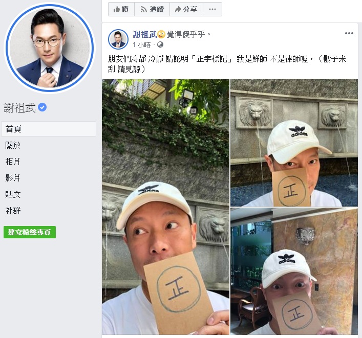 對此,謝祖武本人被罵之後也趕緊發文表示,「朋友們冷靜冷靜!請認明『正字標記』我是鮮師,不是律師哦!」而其他網友看到各種奇葩留言也都紛紛笑說,「真的快笑死XDDDD小武哥我們挺你!」、「鮮師律師也差一個字而已」、「恭喜磊哥再創人氣巔峰」、「鮮師這下又紅了」、「站在地檢署前面大喊:我要當律師!」、「不只草包帶給我們歡樂,韓粉也很努力幫大家創造笑話!」、「感謝韓粉讓我再次回味麻辣鮮師」、「真的祖武震武傻傻分不清楚!」。