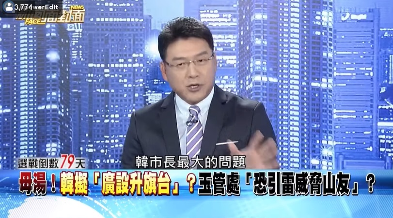 政論節目主持人謝震武在節目《新聞面對面》中瘋狂怒飆韓國瑜12分鐘,說他講話都沒有經過大腦,像是「故宮要一次展出,到金子變成綠色的」,他怎麼可以想說什麼就說什麼,「現在是總統候選人,所有的話都應該嚴肅以待吧!」