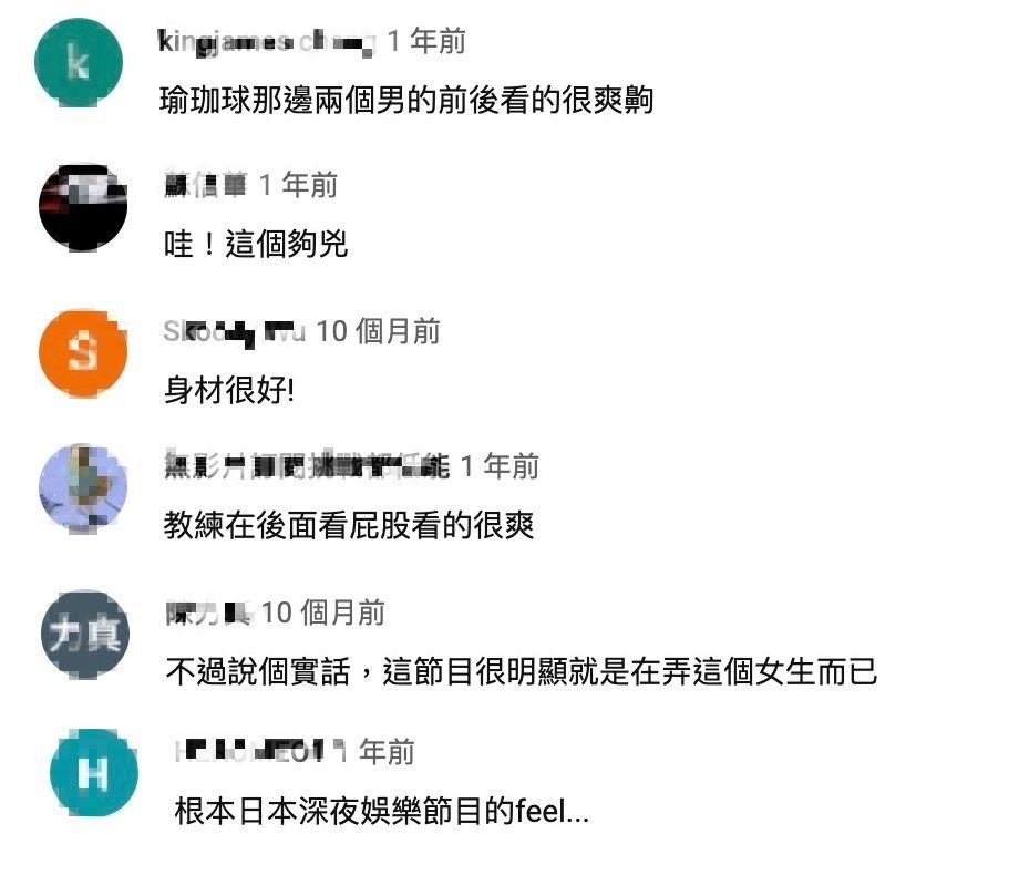 分享完照片後接著元元也和健身教練們一起現場做運動,首先她站上了一塊彈簧床,隨著教練的口令元元開始上下跳動,而她的細肩帶背心似乎有些承受不了晃動,元元為了防止走光兩手分別抓著肩帶處,接著教練也換了許多激烈的姿勢以及使用瑜伽球,每每換新姿勢元元都遊走在走光的邊緣。看見元元如此大尺度的影片後,網友也紛紛留言:「教練在後面看屁股看的很爽」、「根本日本深夜娛樂節目的feel」、「身材很好」、「哇!這個夠兇」、「瑜珈球那邊兩個男的前後看的很爽齁」,引起討論。