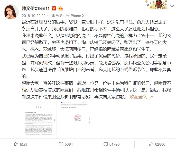 隔月Saye也在自己微博上發表事件看法,對於孕婦表示道歉,但是對於是否動手毆打孕婦堅決地否認,對於整件事情經過詳細的表述,也坦承自己對於沒有將愛犬繫上繩子非常的抱歉。而後續事件,表示Saye將公司解散,而爺爺也相繼去世,並且將自己經營的淘寶店鋪關閉,將剩下所有庫存捐給西藏困家庭和學生。部分網友對於Saye處境開始有護航現象,讓整件事情有了反轉。