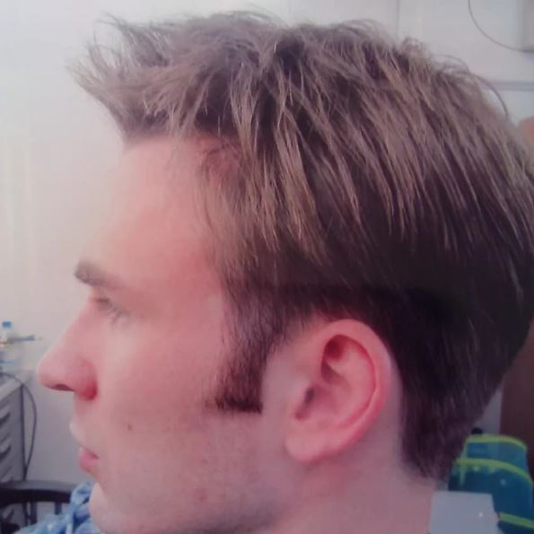 ▼克里斯伊凡戴上「美國隊長假髮」的側面照,現在的道具假髮已經可以逼真到令人近看都無法察覺出差異。