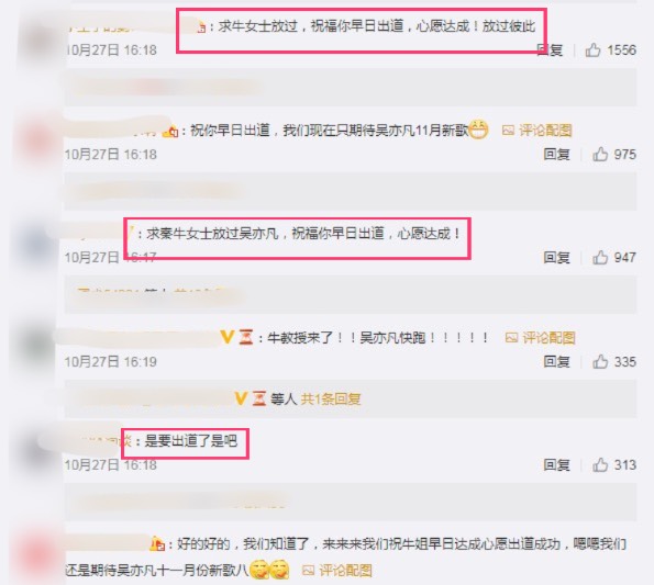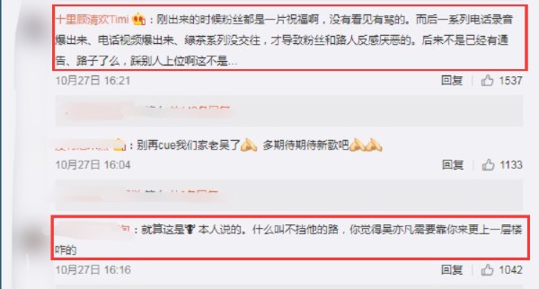 先前就有各種"戀情"的蛛絲馬跡紛紛被眼尖的網友扒出來,吳亦凡先是在綜藝節目中隨身攜帶皮卡丘,據說還是鹿依送的,而吳亦凡也在節目上對皮卡丘深情告白過。此番網友爆出他與鹿依的對話紀錄,讓多數人覺得鹿依想借著吳亦凡的名氣上位,作為一個北電的藝人,這無疑是成名最好的捷徑,可以為日後的演藝鋪好路。讓網友大罵「剛出來的時候粉絲都是祝福,一連串的電話是頻爆出來...後來還有了通告這不是踩著別人上位嗎」、「甚麼叫不擋他的路,吳亦凡需要靠你更上一層樓嗎」、「求秦女士放過吳亦凡,祝福你早日出道,心願達成!」、「是要出道了是吧!」、「求牛女士放過彼此」
