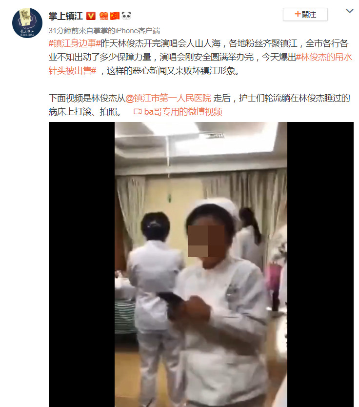 事情爆發之後,網路上還傳開了一段在醫院中所拍攝的影片,從影片中可以看到有多名護士人員,正在輪流搶著要躺「林俊傑躺過的床」,而且還在上面翻來翻去的,甚至拍照留念!讓網友們看了都覺得超傻眼,「真的是丟盡鎮江的臉啊!」