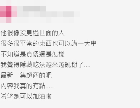Dcard文章一出,立刻引來許多網友紛紛留言,「每次看兩分鐘就關了,真的廢話連篇,留言區還一堆人說真實用」、「他很像沒見過世面的人,很多很平常的東西也可以講一大串,不知道是真傻還是怎樣」、「還要描述那個白飯的形...真的是廢話kiki」、「就是沒內容硬要」。不過也有人認為,kiki有些影片拍得不錯,盼她能多多加油。