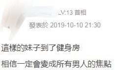 許多人為了維持好的體態和顧及身體健康,多數人會選擇到健身房養成規律的運動習慣。近日,一名網友利用連假的時間到健身房運動,沒想到運動期間竟有豔遇降臨,遇見號稱有台版「沖田杏梨」之稱的正妹,並且呼籲男性,如果要健身晚間7點到8點人潮最多但也是妹仔更多的時候,還不忘發問廣大的鄉民:「想問在健身房遇到這麼兇悍巨無霸大奶妹在健身,該怎麼向前切磋指教呢?」讓底下留言瞬間暴動,直呼「太晃了!」