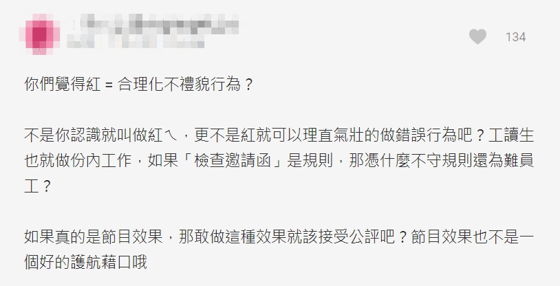 該篇Dcard文章一出,隨即引來網友在貼文底下熱烈討論,有的網友直接痛批「人醜心也醜」「工讀生很可憐」「不論紅不紅,本來就不應該這樣說話吧,工讀生也只是在做自己分內工作而已啊」。