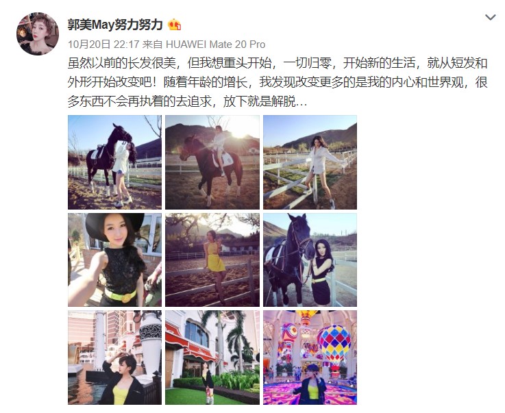 當年假冒中國紅十字商業總經理,在北京開設賭場,炫富網美郭美美,在今年7月14日正式出獄,出獄後郭美美以一身短髮,並且在個人新微博上表示,「謝謝大家的關注,我正在努力蛻變,沉澱自己」,但也有網友發現,一出獄後的郭美美立刻去醫美,網友對此表示「五年鼻子也長高了」。