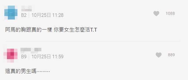 但是因為照片中成果驚人,他的乳溝相當深邃,其中一張躺在床上的照片裡,他的乳溝幾乎開到鎖骨部位,讓網友紛紛直呼不可思議:「你要女生怎麼活?」、「這真的男生嗎⋯⋯⋯」
