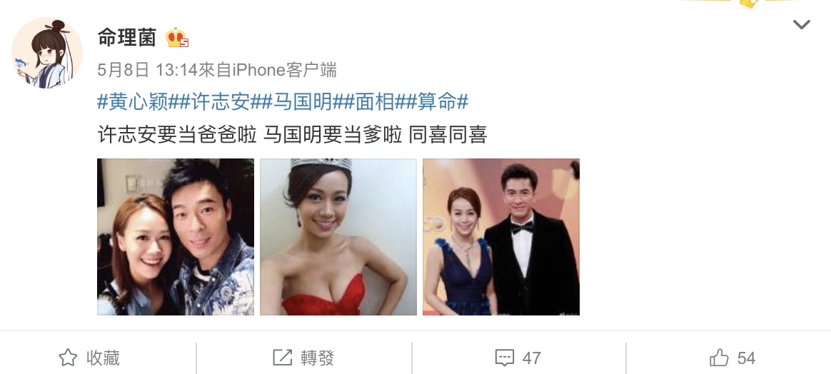 不過其實黃心穎去年3月底因為在片場嘔吐就被傳懷孕,但她當時澄清只是感冒。今年五月微博上也有網友po文「許志安要當爸爸啦,馬國明要當爹啦,同喜同喜」預言黃心穎懷孕。而當晚「許志安」登上微博熱搜的同時,鄭秀文在IG 上依舊不受影響地分享29號晚上與張衛健老婆張茜等好姐妹的聚餐照!po 文中還Hashtag:「人大了難得放肆地笑,但這夜相聚令我們都能把煩惱盡量忘掉。」