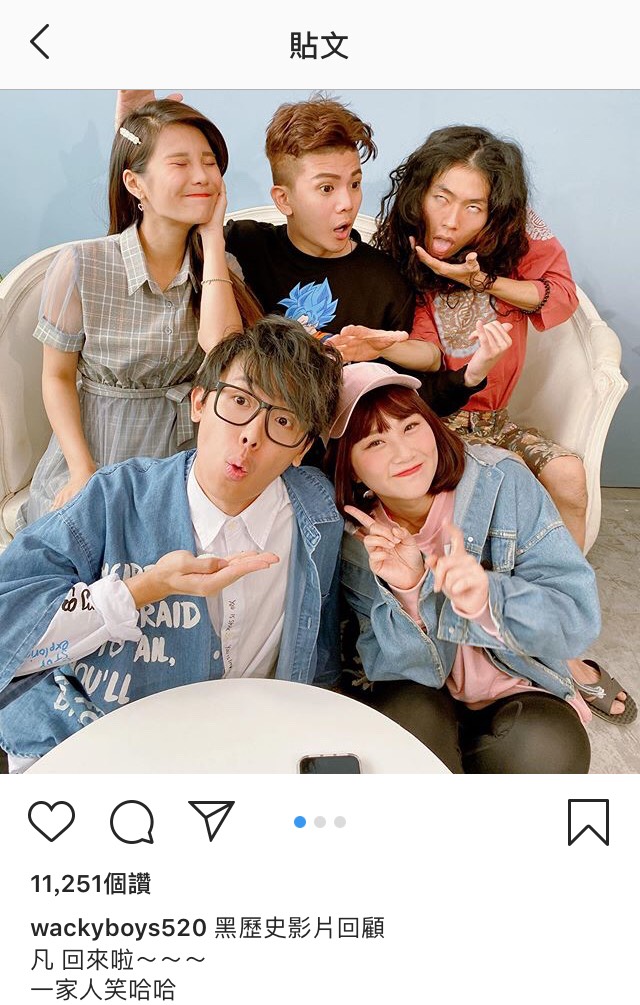 網紅、YouTuber「WACKYBOYS反骨男孩」拍片題材多元、尺度大,許多無厘頭的用詞更成為時下年輕人的口頭禪,其中成員之一的「焦凡凡」不計形象搞笑演出的搞怪少女形象更是擄獲大批粉絲。不久前驚傳她退出團體,當時經紀人曾回應「凡凡最近還是有出現在影片中」。不過就在昨天,「反骨男孩」IG po出了團體合照,大呼「凡回來啦!」,令大批粉絲又驚又喜。