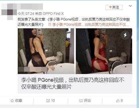 然而除了影片被曝光之外,在微博上更瘋傳一組李小璐在浴室內自拍的性感照,該張照片中李小璐僅穿了一件黑色蕾絲的薄紗內衣,露出豐腴的美臀以及大半部分的背部,尺度非常的大,但就有一派網友認為這組圖是移花接木並非李小璐本人,掀起一陣熱議。此外在網上也流傳一張自稱是賈乃亮劇組的工作人員對話的截圖,上頭寫著:「我在賈乃亮劇組,他現在已經瘋了」、「現在整個人都不說話了」,表示整個劇組已經暫停拍攝。