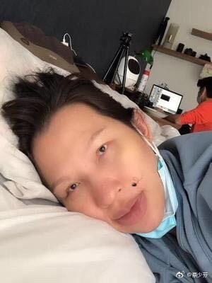 蔡少芬近日在微博上面貼出一張「慵懶躺床自拍」並寫道「美有好多種類!」,我們從照片中可以看到,她的眼睛整個明顯變小、眼距被拉開、鼻子腫成蓮霧鼻,連雙唇都腫得像兩條小香腸,臉上還出現一顆長毛的痣!讓網友們看完都驚訝不已,紛紛以為她是不是出了什麼事!