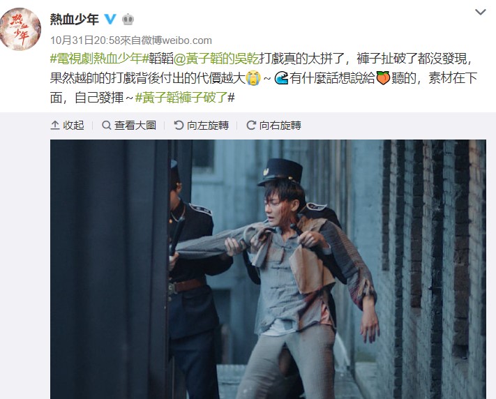 前韓國男子團體EXO及中國分隊EXO-M成員「黃子韜」,在四年前退出EXO,並回到大陸成立了「子韜Z.TAO工作室」,開始了在中國演藝圈單飛闖蕩,不僅在歌曲上有不錯的表現外,更在戲劇方面有相當出色的表現。近日,由黃子韜擔當主演的《熱血少年》開播後,其中一幕因為武打而意外走光,引起網友們熱烈討論。