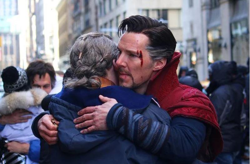 原來在最近班奈狄克參與 BBC 《觀點》(The View)節目受訪之時,他一一與在場主持人友好擁抱問候,不過其中一位女性主持人主持人喬伊貝赫爾(Joy Behar)告訴他:「我生病了,就不抱你了。」沒想到當下班奈狄克秒回:「我是奇異博士。(I’m Doctor Strange.)」並毫不介意地上前擁抱女主持人。