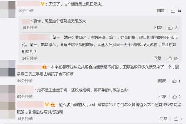 過去有許多藝人都曾被抓拍到私底下抽菸的模樣,許多粉絲都認為雖然抽菸本身不違法,也紛紛跳出來替藝人們說話,然而這次Angelababy除了打破過去戒菸的承諾,在室內抽菸本身也已經違法,引發熱議。