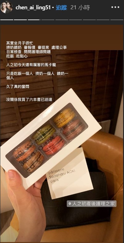 而陳艾琳當然也不會白白任老公欺負啦!她也馬上在限時動態回擊說,之所以會崩潰大哭,是因為Alex丟下我一個人在月子中心,大半夜的,他居然跑去吃麻辣鍋,「這世界太不公平了!」。陳艾琳也跟大家分享她在月子中心的生活,她覺得其實坐月子還是很忙,「擠奶餵奶、審報價、審提案、處理公事、日常檢查、問護理師問題、吃飯、吃點心...等」,也哀怨的說,「吃飯一個人,擠奶一個人,餵奶一人,久了真的蠻悶的!」。