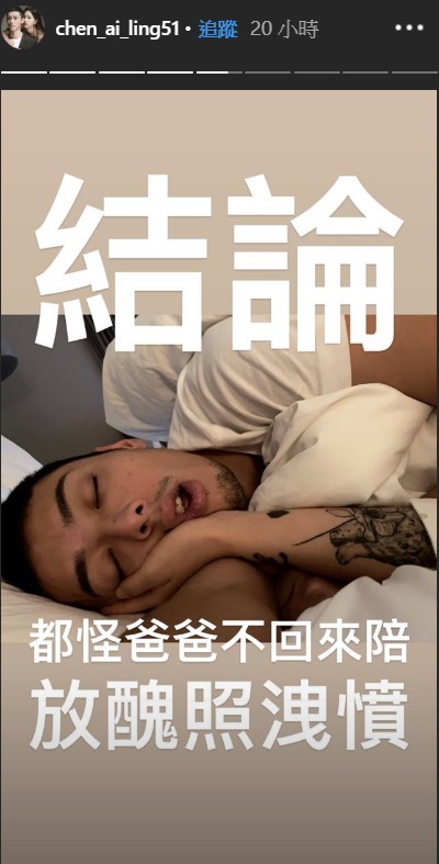 從《大學生了沒》出道至今,已經邁入30歲的陳艾琳,現在也已經是孩子的媽了,最近她老公Alex(顏庭笙)在個人IG限時動態PO出陳艾琳在床上崩潰大哭的影片,還在一旁大笑說,「顏蘵,你看媽媽生你的時候...哭到雙下巴都出來了,厚~還學豬叫!你知道為什麼嗎?因為她覺得在月子中心好無聊哦!無聊到哭爸!好好笑哦!」結果發完之後,Alex又接著說,陳艾琳氣到不理人,還說陳艾琳現在就像是「受刑人」一樣,逗得網友們大笑~