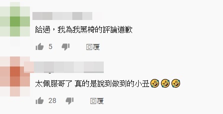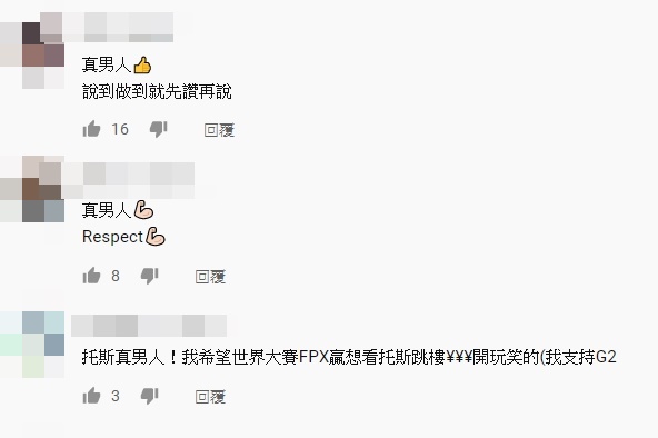 Toyz影片一出,立刻引來不少網友大讚真男人,紛紛留言表示,「太佩服哥了!真的是說到做到的小丑」、「給過,我為我黑椅的評論道歉」、「裸奔公道伯」、「真男人!Respect」、「S2世界冠軍—S9淪落到要街上裸奔」。