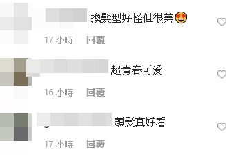 閃亮亮一貼出照片,立刻引來不少粉絲留言表示,「換髮型好怪但很美」、「突然認不出來啦」、換了髮型更年輕了「瀏海超可愛」、「髮色和髮型都很適合!」、「換了髮型感覺完全不一樣耶」。