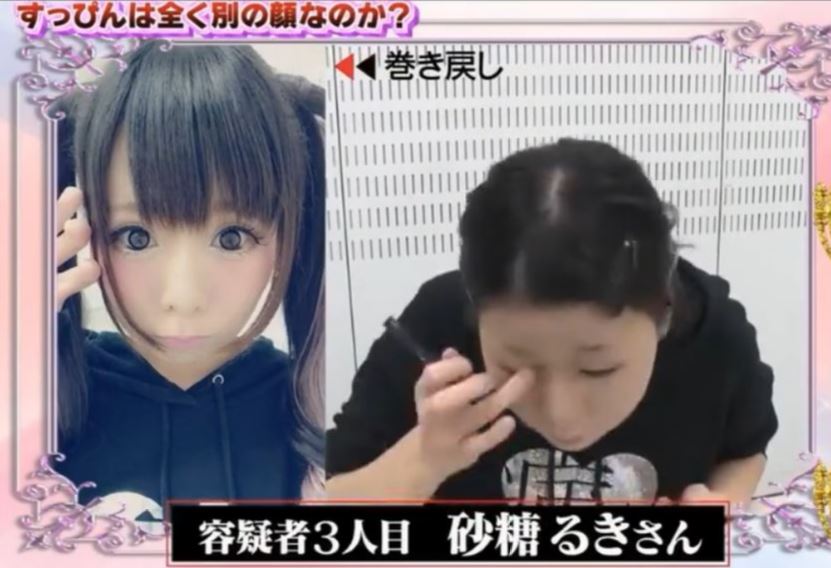 化妝的技術博大精深,許多技術高超的女孩在完妝之後,簡直就像整形了一般,五官已經和原本判若兩人,不僅單眼皮可以變雙眼皮,鼻子也會的更加高挺,甚至連臉型都變小了,因此許多網友戲稱化妝是「易容術」。有一名日本女萌妹「砂糖るき」,就因為在節目上當場卸妝,結果差異之大,嚇壞一票網友!