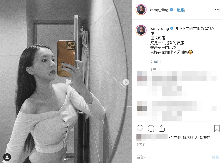 奎丁日前在IG更新照片,上傳一張黑白照,只見她穿著一件平口衣服,露出性感鎖骨。可惜因為她姣好的「E杯身材」,竟差點將衣服撐爆,胸前的扣子更是快「ㄍㄧㄥ」不住,開出一排小黑洞!奎丁也在貼文中寫下,「這種平口的衣服就是我的愛,但很可惜,又是一件爆開的衣服,無法穿出門玩耍。」