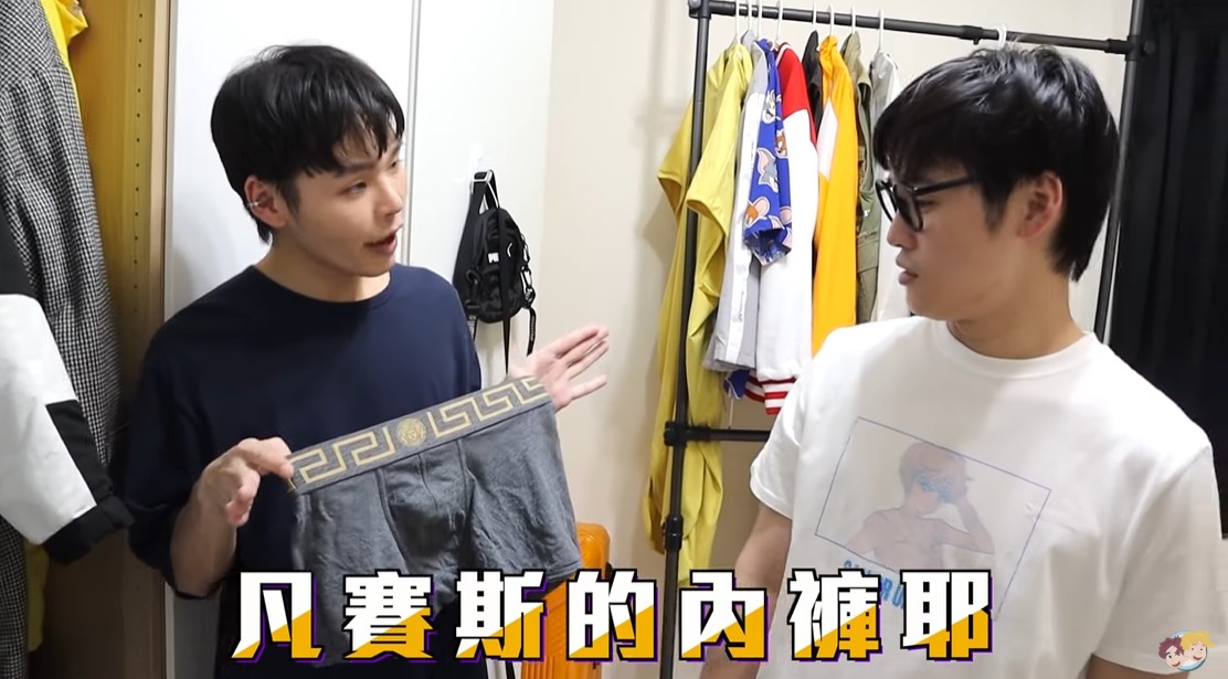 近日在「展榮展瑞K.R Bros」頻道中上傳了新影片,互相開箱彼此的衣櫃,影片一開始由弟弟展瑞闖入哥哥展榮家,在介紹衣櫃的過程中,可以看出展榮的穿衣風格,有不少鮮豔的衣服。然而影片中展瑞也翻出大家最想知道的「私密物」,將展榮的貼身衣物公布於眾,意外曝光哥哥穿的都是名牌!