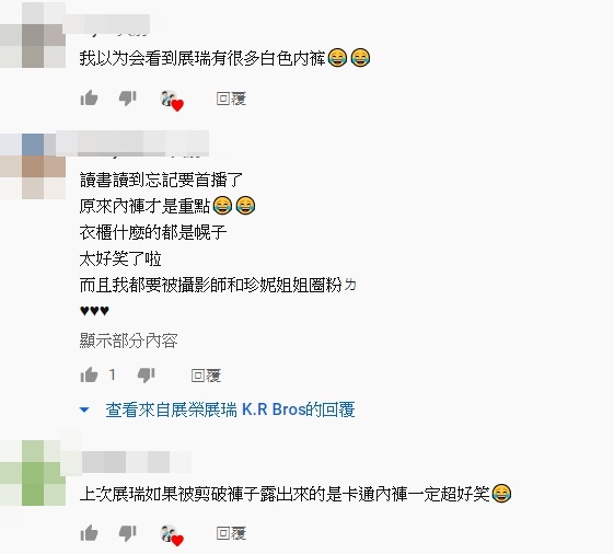 影片一出,引來6萬多人觀看,其中也有不少人紛紛留言表示,「展瑞衣櫃的那段我真的快笑死了!還拿內褲給展榮聞」、「哥哥的簡單風,弟弟的豪華風」、「這集真的從頭笑到尾」、「展瑞的房間好童趣,喜歡~~傑利鼠家族」、「我以為會看到展瑞有很多白色內褲」、「原來內褲才是重點」。