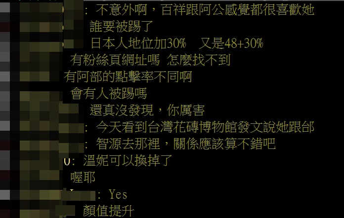 當時文章一出,引來不少鄉民發表看法,「不意外啊,百祥跟阿公感覺都很喜歡她」、「節目要換血了....」、「有阿部的點擊率不同啊」、「日本人地位加30% 又是48+30%」。