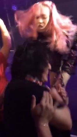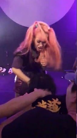 而在下一秒,這名女偶像卻突然對著台下的粉絲狂搧耳光,接下來又用腳開始瘋狂猛踹,手腳並用,對著粉絲拳打腳踢,誇張行徑讓人看傻了眼。不過事實上,在女偶像執行暴力的過程中,男粉絲不僅沒有露出不悅、痛苦的樣子,反而十分享受於其中,在原地動也不動,甚至露出喜悅的樣子。而一旁的其他粉絲非但沒有阻止,還有人抓住被踹的男粉絲,讓他站在原地被打,一副見怪不怪的樣子。
